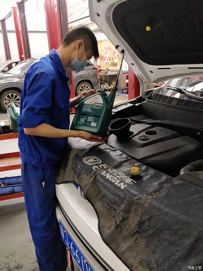 CS35plus是长安汽车打造的一款城市紧凑型社交互联SUV,她是在原老款CS35基础上增加了车身尺寸,精细了内饰做工和增加了智能化,科技感十足的配置,凭借时尚靓丽的外观,超大的驾乘空间,以及科技感十足的配置,从18年十月上市,就受到广大消费者一致好评,销量基本上每个月都是五位数以上,再次成为长安汽车下爆款车型。休息陪爱车CS35plus去长安更换机油保养,选择合适机油时,需严格按照使用说明书所规定的机油级别选择,若无相同级别的机油,只可以使用高一等级机油绝能用等级的机油代替。同时要注意机油粘度是否符合要求,不要有选贵的不选对的想法,机油对于发动机就如同血液对于心脏一样重要!