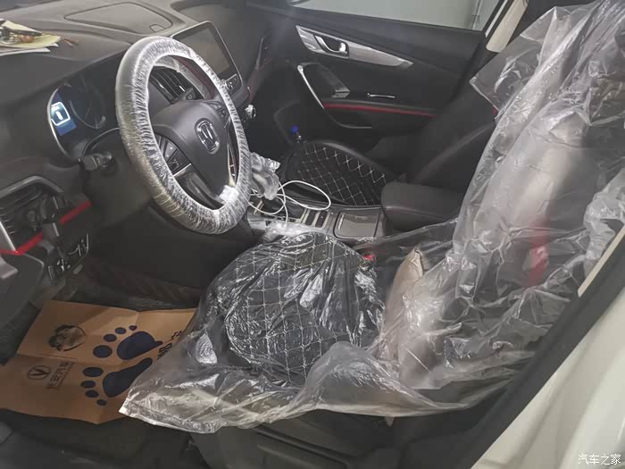 接待给套上了一次性座椅套,长安售后服务做的很细。