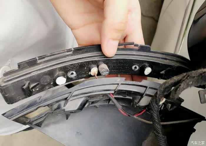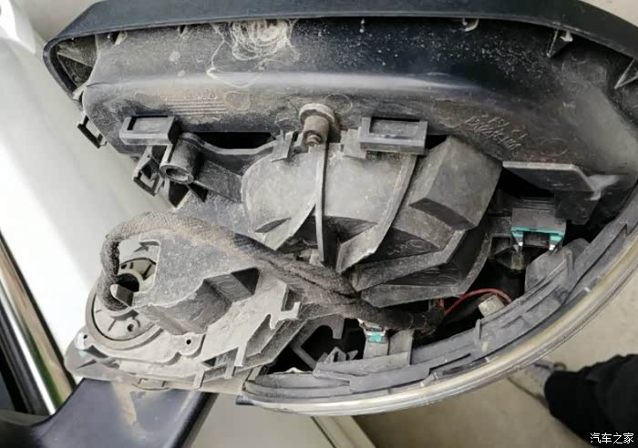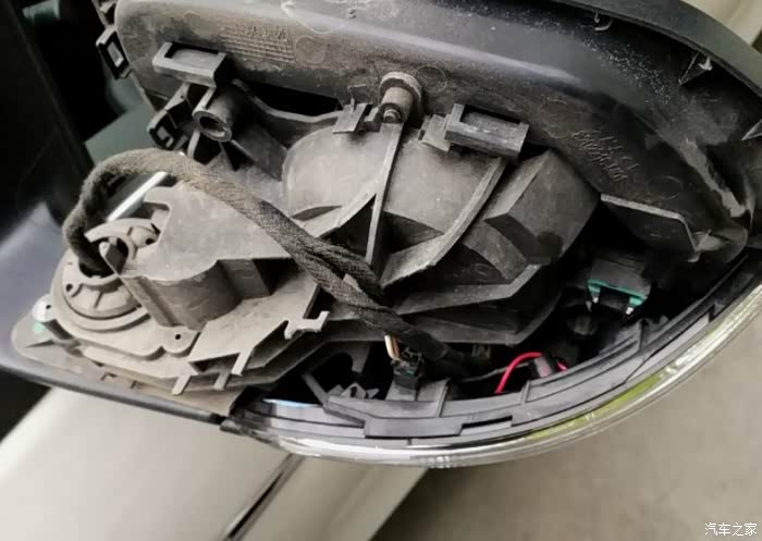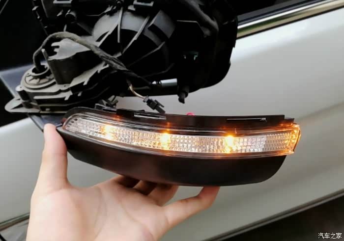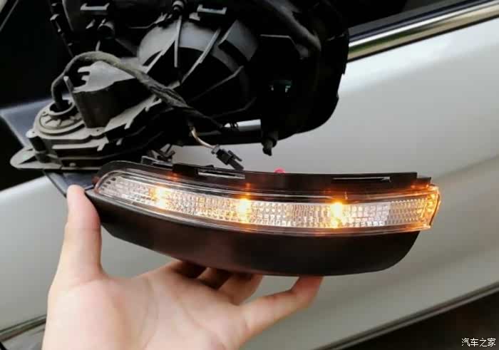 后视镜壳拿掉了,里面好像很复杂,灯条是连在底座上去的