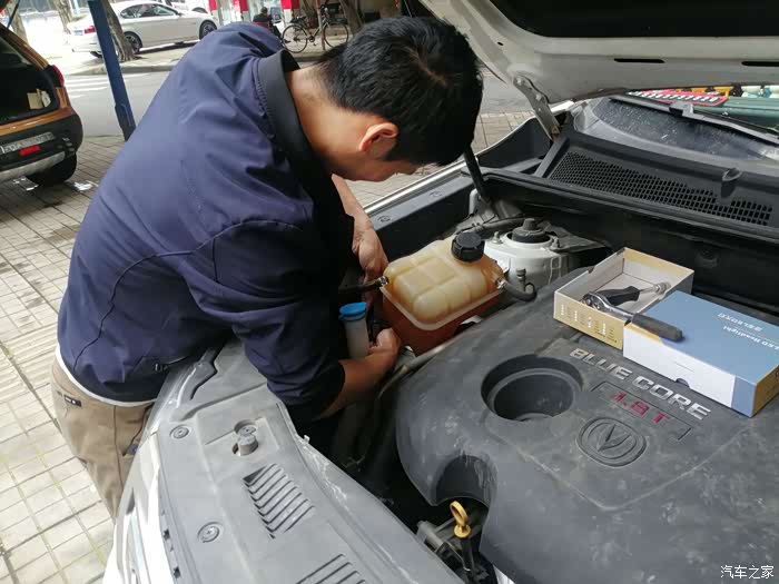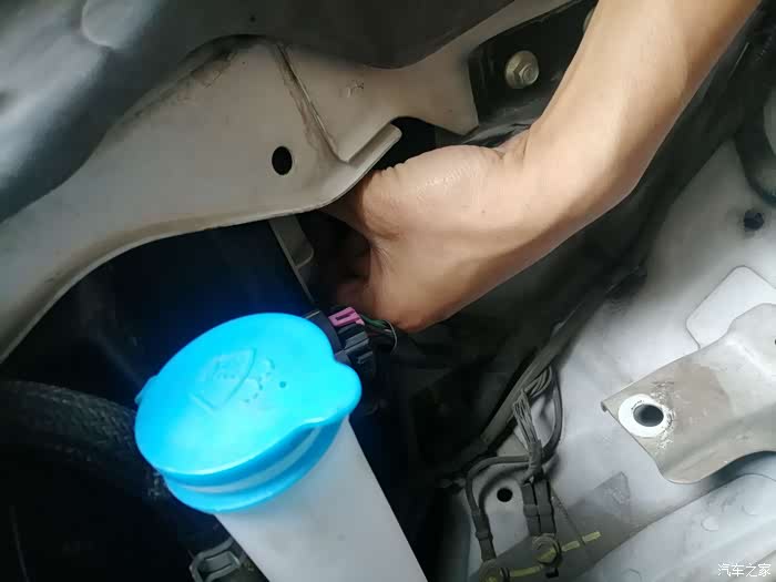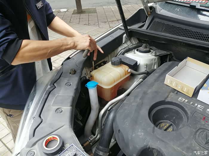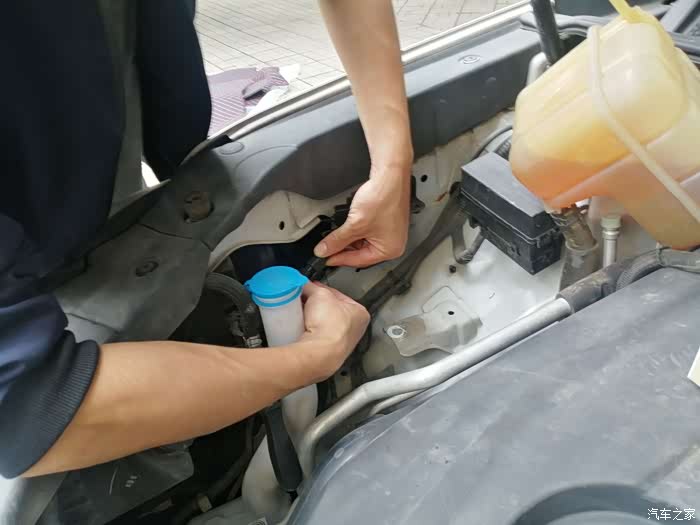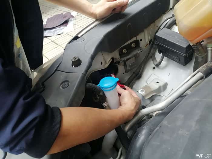 副驾处由于有冷却液箱挡住了位置,因此需要将其拆开避让