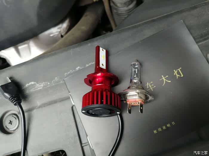 拆下来的卤素远光灯对比LED远光灯