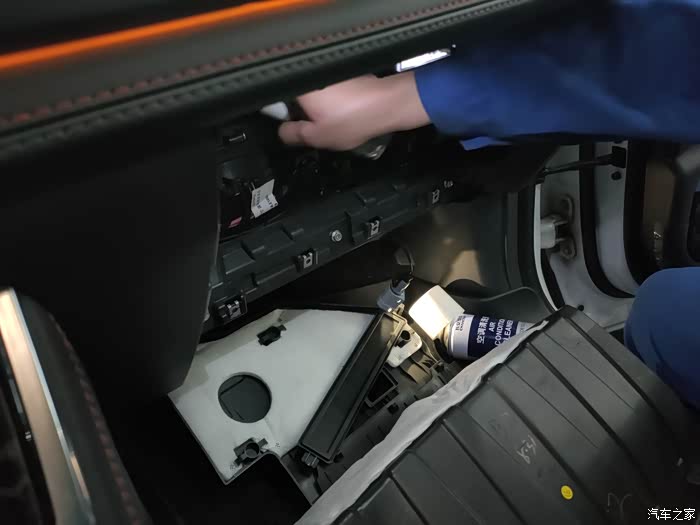 说到换空调滤或者清洗空调,比较麻烦的就是这个拆卸,空调滤隐藏在手套箱的后面,想更换需要拆掉手套箱,自己操作还是有一定难度