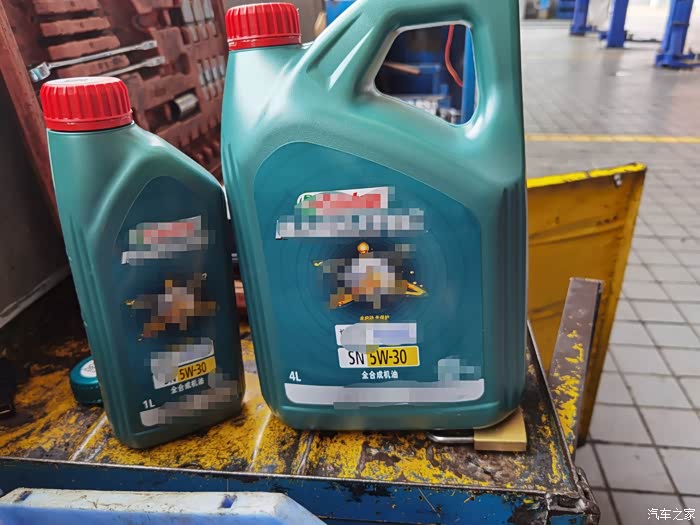 这就是我更换的机油。因为是1.8T的,所以得两桶,一桶四升的 ,一桶1升的。