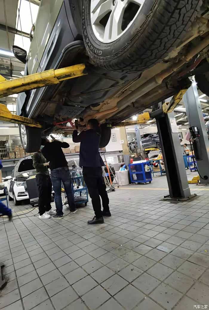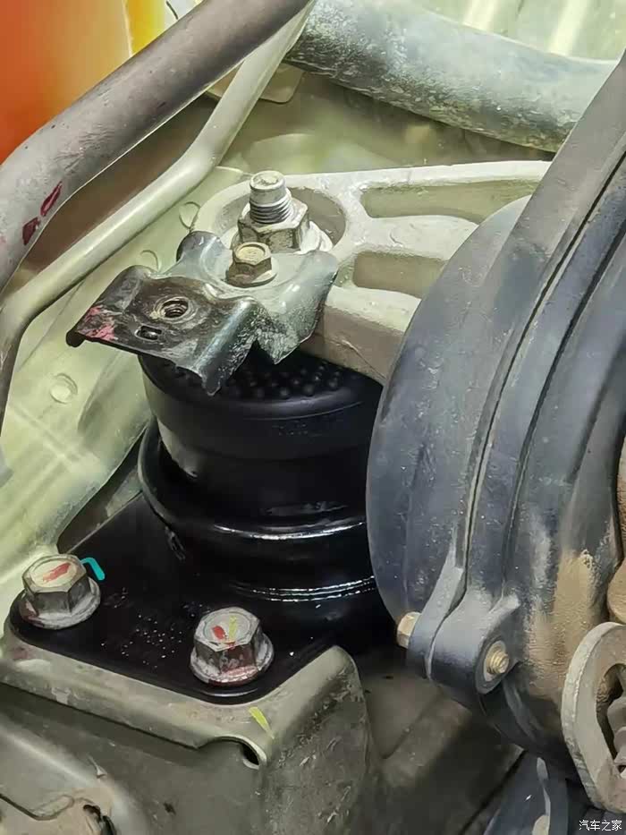 首先说一下机脚胶是什么。机脚胶就是稳定发动机的四个脚,这四个脚是成不规则的分布在车架之上的,目的就是把发动机稳定而且还要受力均匀,同时机脚胶里面的橡胶会把发动机的震动过滤,从而达到一个静音的效果。那么发动机工作时时高温状态,所以时间久了很多车主都觉得自己的车抖动起来了,特别是冬天的时候。这里的抖动是指怠速和N档的时候,这时候基本上都是机脚胶里面的橡胶老化了,改更换它了。我们老款75是四个机脚胶,而现在新款车型很多都改成三个机脚胶了,成三点分布,说明技术更新了。这次更换机脚胶的时候刚好遇到厂家技术部和售后处理的一些技术人员在调研,趁这个机会跟他们好好的聊了聊这个四驱75.他们也很认真的并仔细的查看我们车辆情况和记录,后面上图来一一解说。