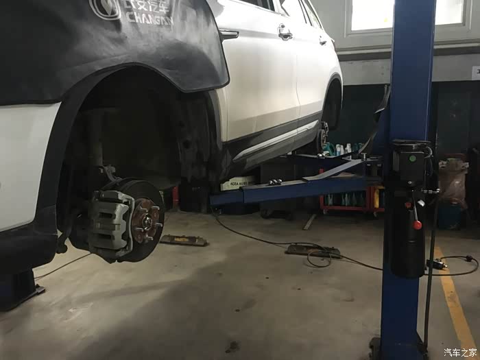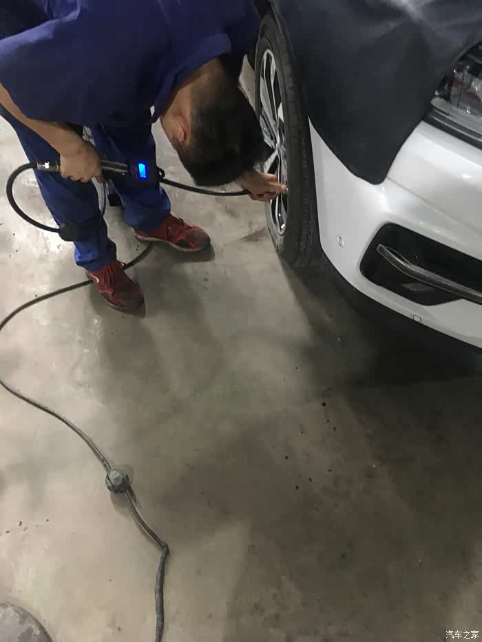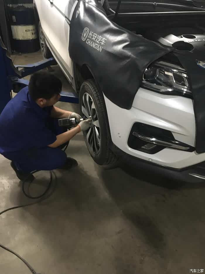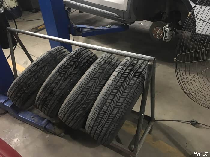 技师在卸我的4轮胎,这次保养要对4个轮胎检查