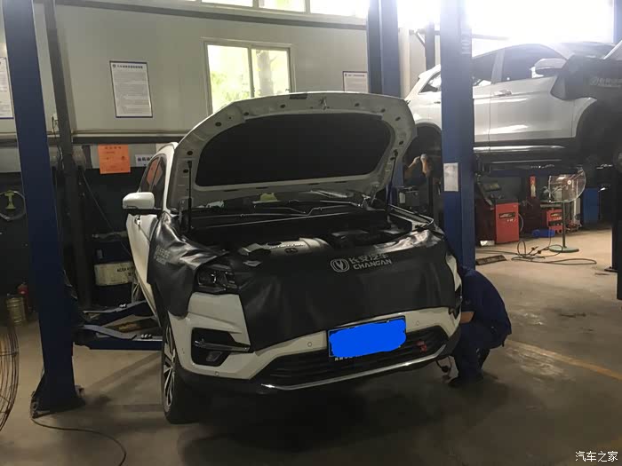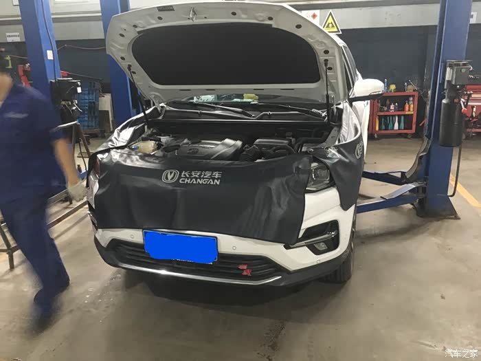 来到保养工位准备开始保养,打开机盖,保护的垫子盖好
