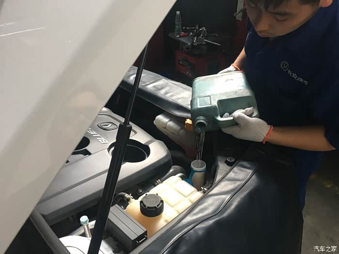 师傅检查了冷却液,刹车油和玻璃水后,在对不够的进行添加