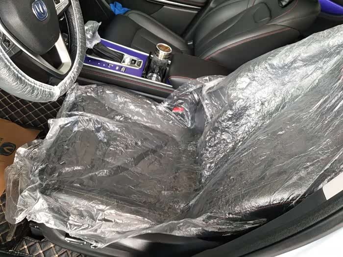 座椅一个塑料座套防止工人身上的油污沾到爱车上是不是很贴心