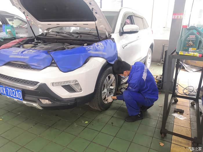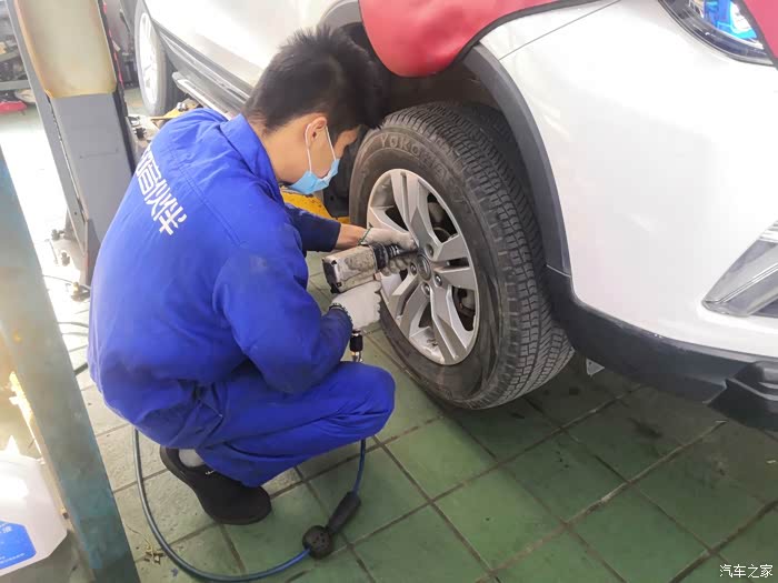 今天的保养项目基本完成了,保养师傅得轮胎装好就可以了。