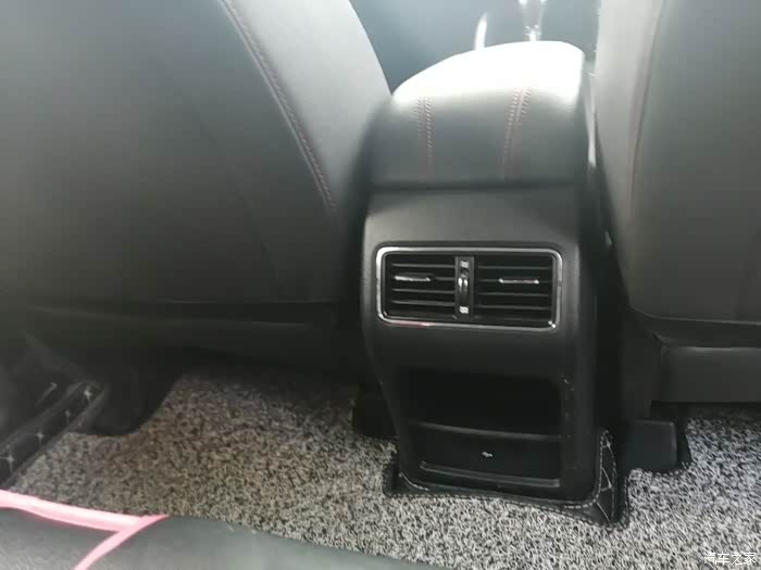扶手箱是皮质的,后排座椅还配有空调出风口,赞一个。