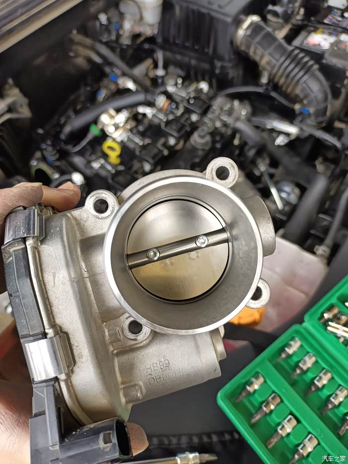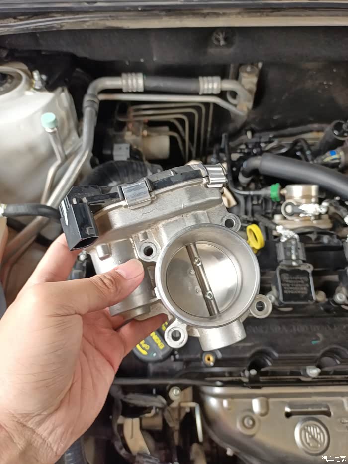 拆下来的两万多公里的节气门,阀门两边油泥清晰可见。