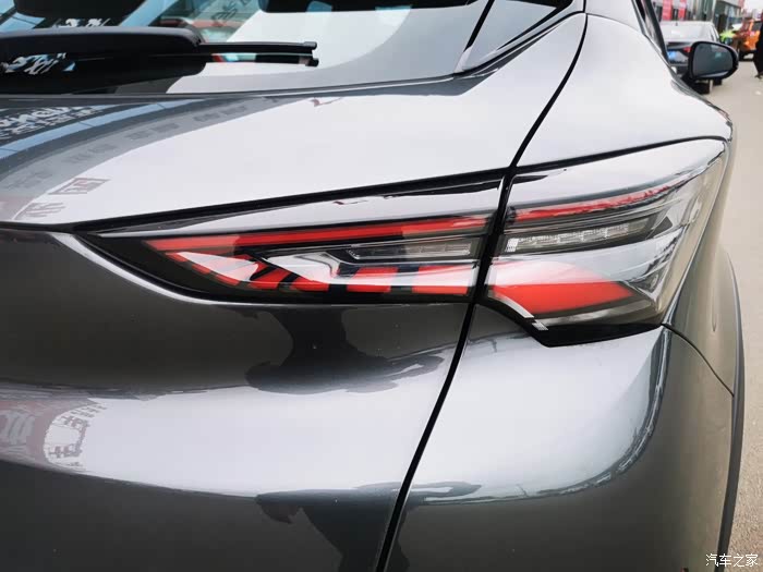 熏黑尾灯造型精美,点亮以后显得光芒四射