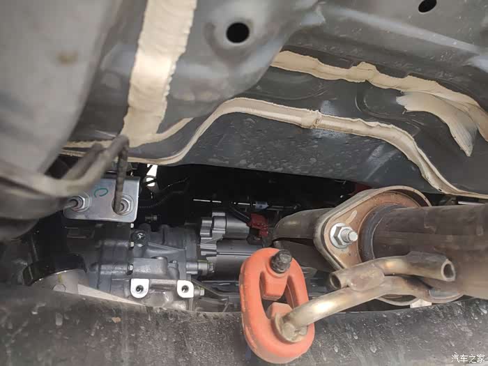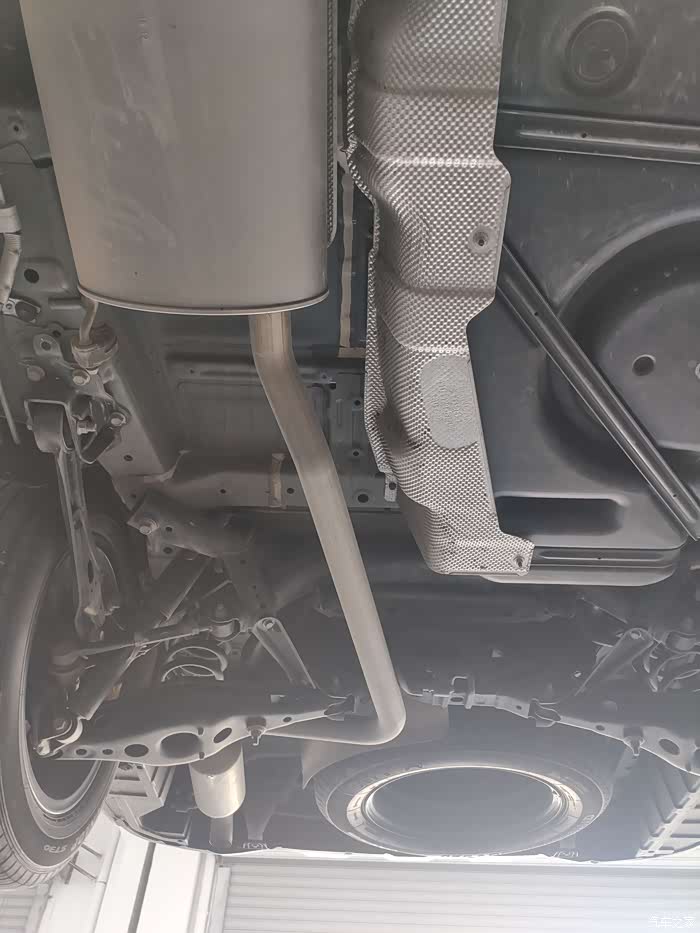 排汽管在底盘中间,也是最底处,经过坑洼的地方,一定要小心,开慢点。前几天不小心蹭了一下,今天正好看一下, 还好,没什么痕迹。