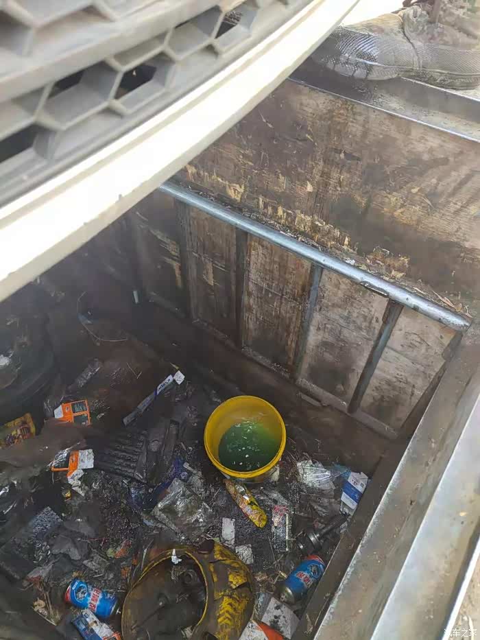 冷却液拿了个桶接着,还能用