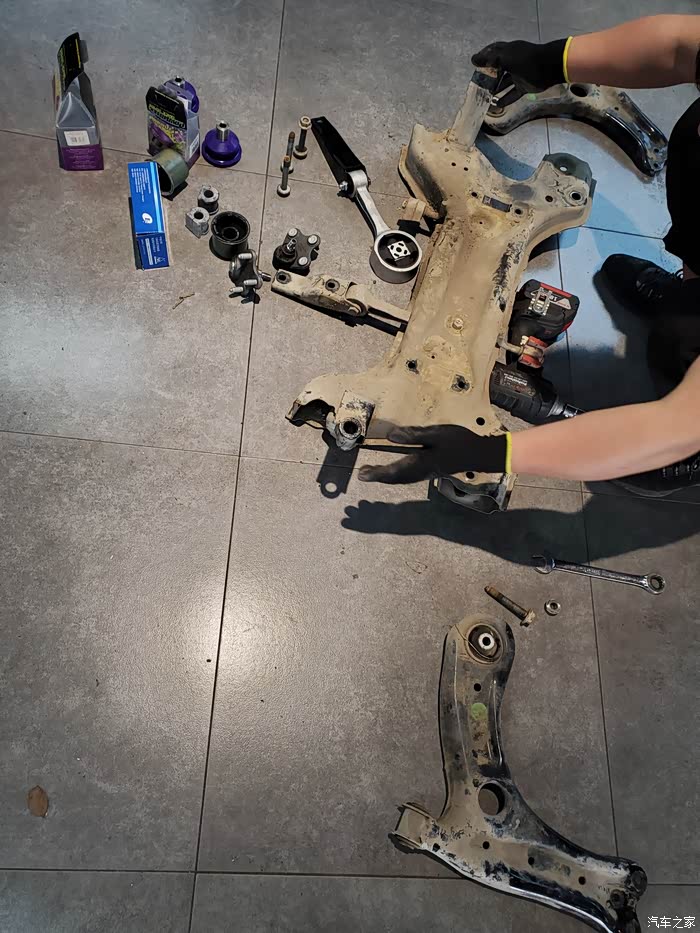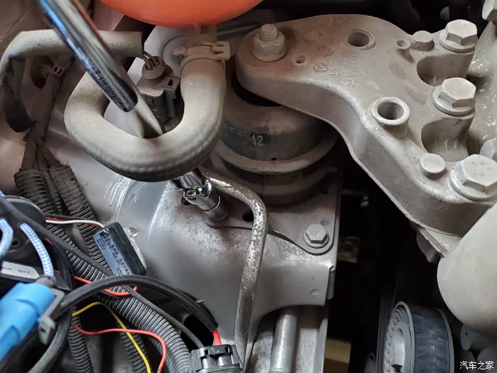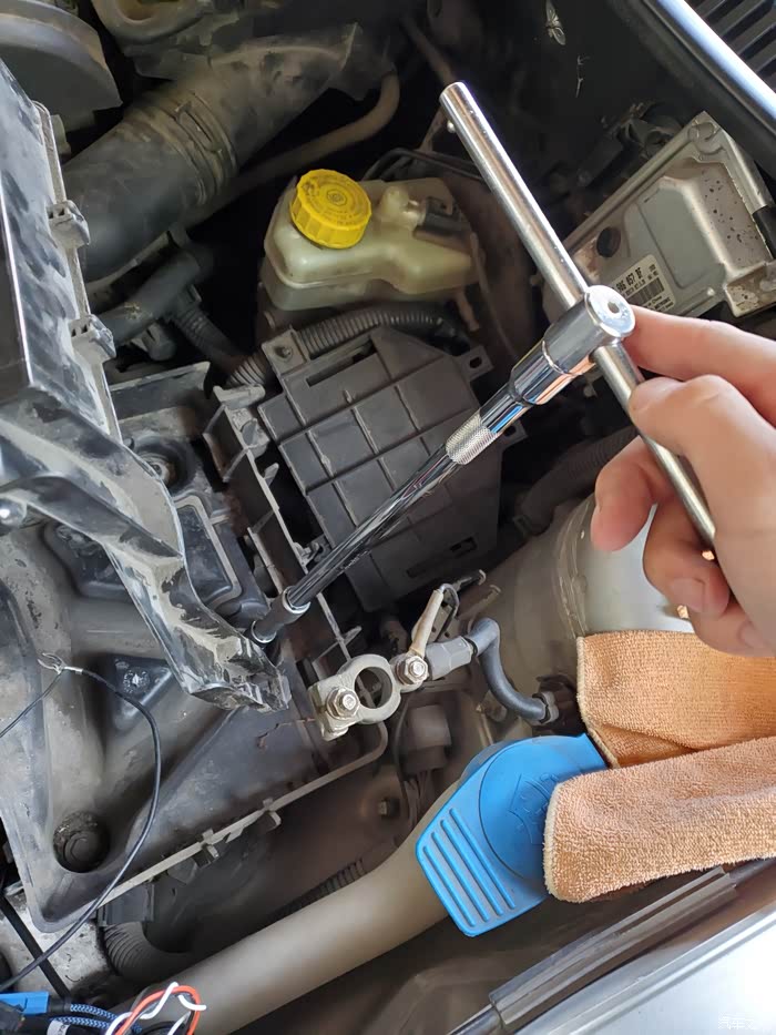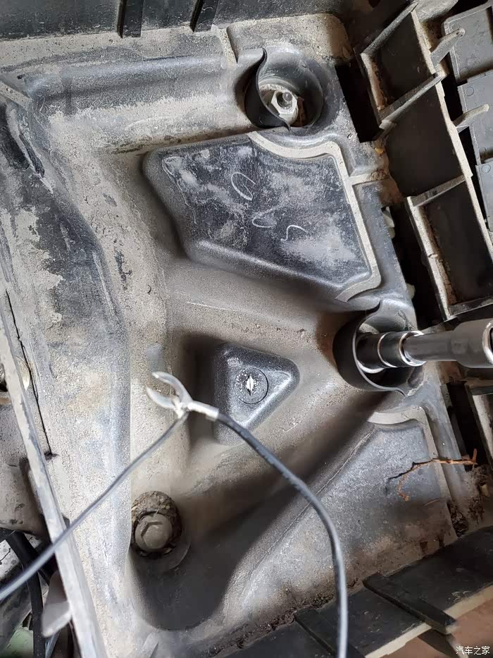 这个横着的螺栓需要把图里左侧的那颗拆完,车身抬起,然后发动机落下去,才能拆出来,角度刁钻,建议棘轮扳手伺候