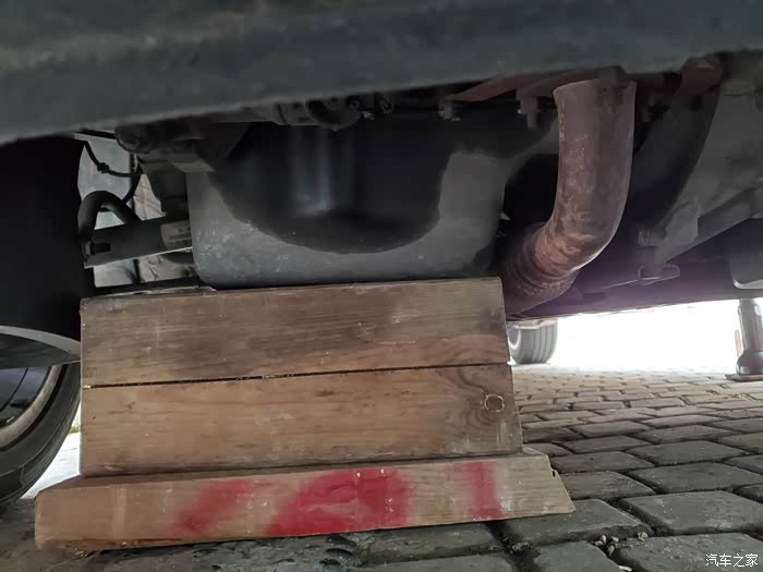 顶起后副驾侧油底壳下方放木块,最好是软质的,接触面越大越好,还要稳,然后降低副驾千斤顶,直到发动机被顶起