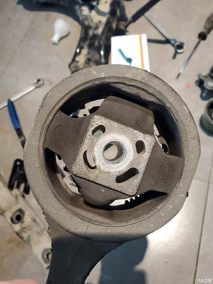 本人的旧变速箱机脚胶,可以看到两侧都已经严重变形