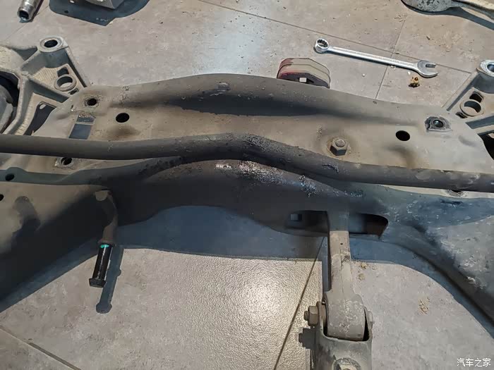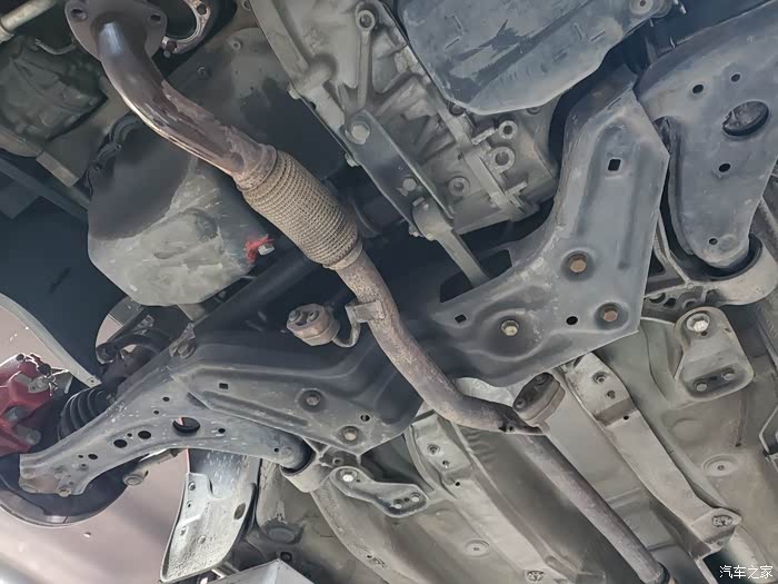 这个角度可以很清楚的看到变速箱的机脚胶的位置,一颗螺栓的事,躺在车下也可以操作,发动机不会掉下来,我自己车的元宝梁,没有任何锈迹,非常干净,不敢想这是一辆13年的老