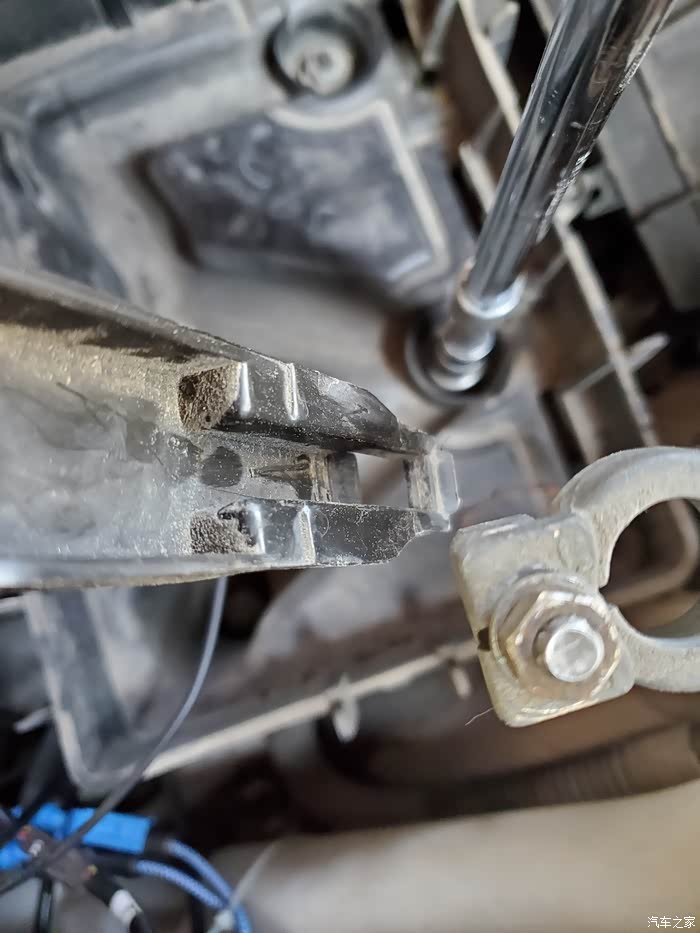 电池支架卡子是这个结构,很明显之前给我安装电瓶的人没有安装到位,还有些零件,直接拆就可