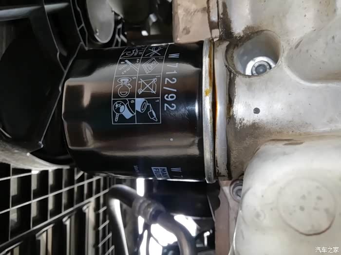 机滤密封圈抹油,拧紧,徒手拧紧就行,冒出来的油是密封圈上的