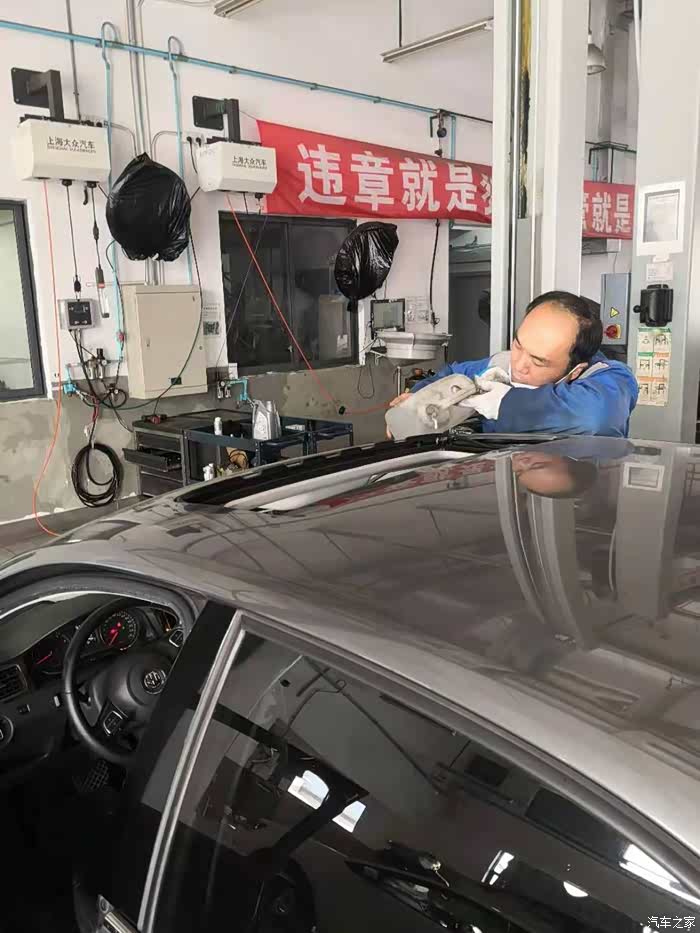 师傅很仔细,还给天窗排水槽灌水,检查了下天窗排水槽是否堵住,很贴心的服务