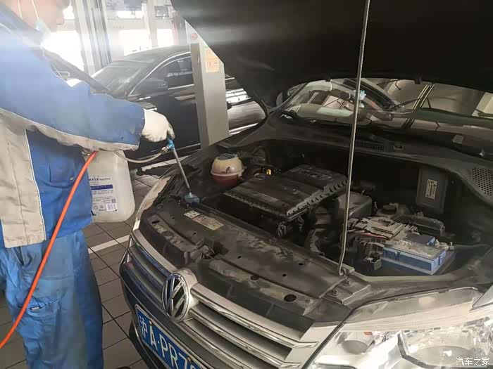 把发动机舱清洗一下 清洗后还挺干净的,里面的灰尘都清洗掉了,干净多了