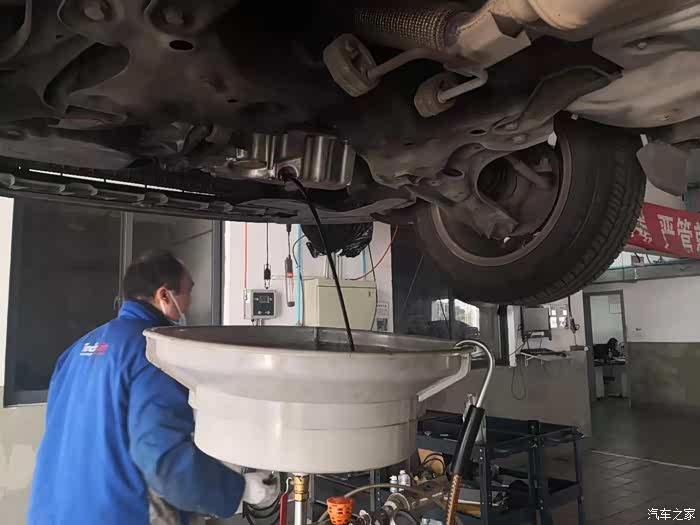 开始加注新的机油,师傅挺认真的,加注完后又检查了一下其它液面都很正常!这机油是4升装的,小灰灰的1.6L 发动机刚好使用4升机油,正好