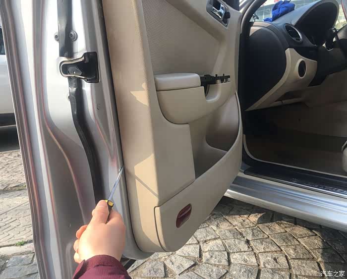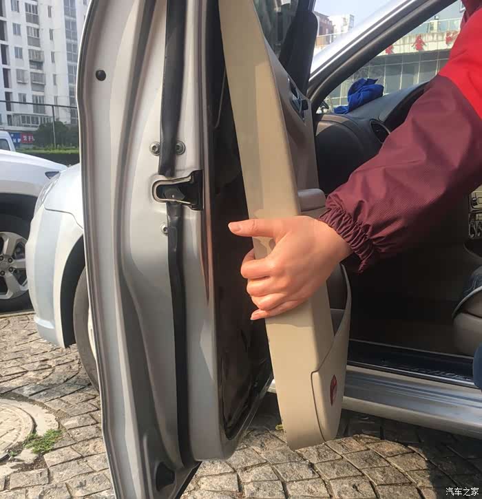 先将门板掀开,再往上抬(注意不要太用力,以防将门内的插头插线弄断,车门上的防盗指示灯很容易弄断的)