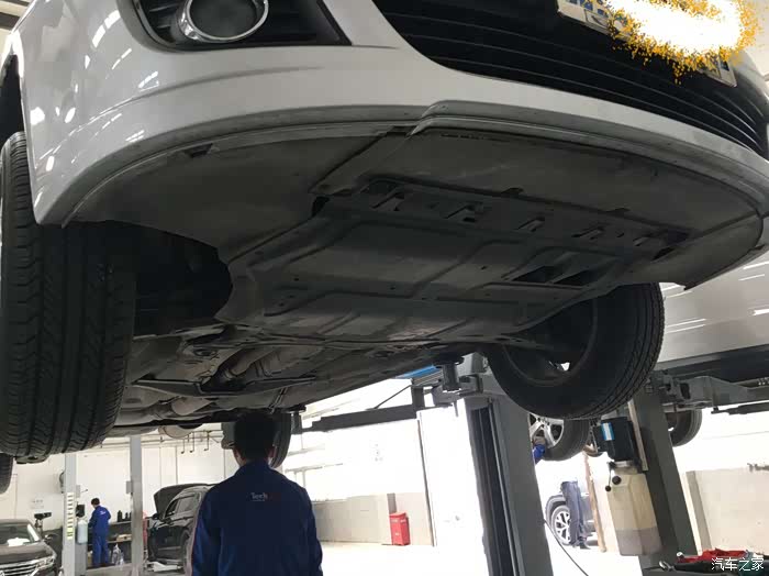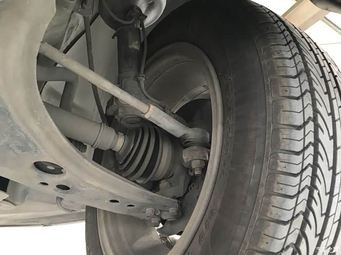 将车子升起来,这才是最主要的,因为平常我的检查是看不到底盘上的状态和轮胎内侧的状态的。