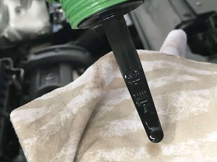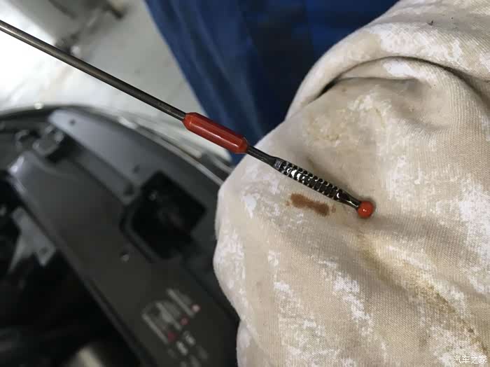 因为下班开了半小时到4S店,才停下来所以机油液位中线偏上一点也属正常。