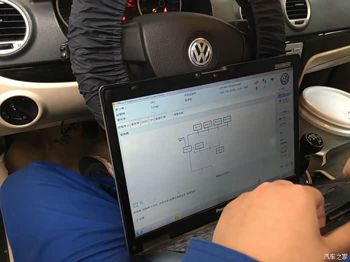 链接电脑查看是否有故障码(当然没有故障码了)。车子的仪表盘上保养提示,竟然忘记给我消除了,后来车间技术员帮我消除的,虽然我自己也可以操作,但其实他应该顺便帮我消的。