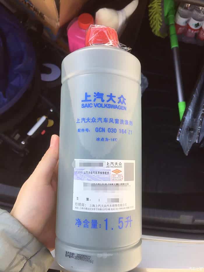从后备箱中取出我的原装玻璃水,冰点是零下16度的,在江南地区足够应对冬天的温度了。