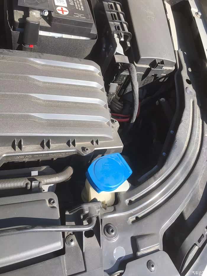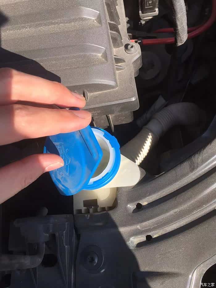 这个蓝色的盖子就是添加玻璃水的入口。