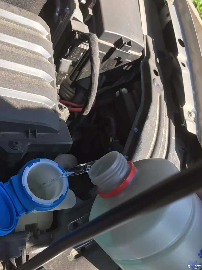 将玻璃水缓慢的从添加口倒入。