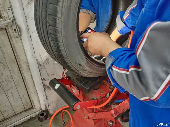 开始拆轮胎,把螺丝外面的胶套拿掉