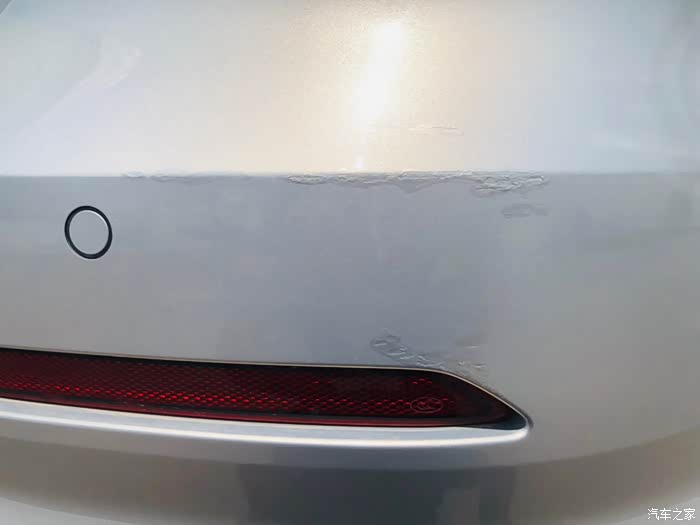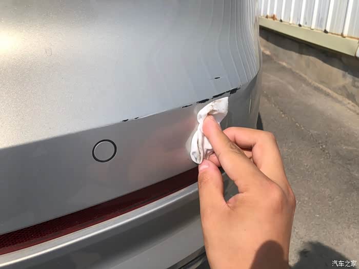 首先用湿纸巾把漆面的白色油漆,还有挂下来没有刮干净的油漆面给清理干净,用毛巾把水分擦干。