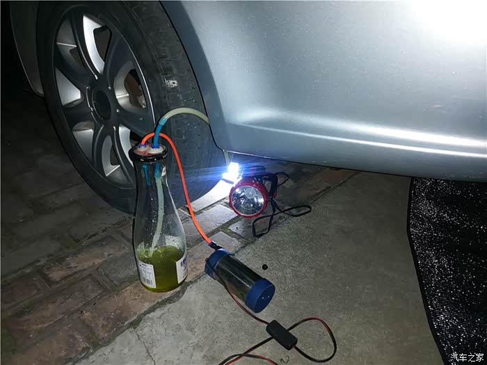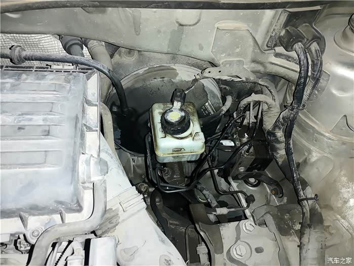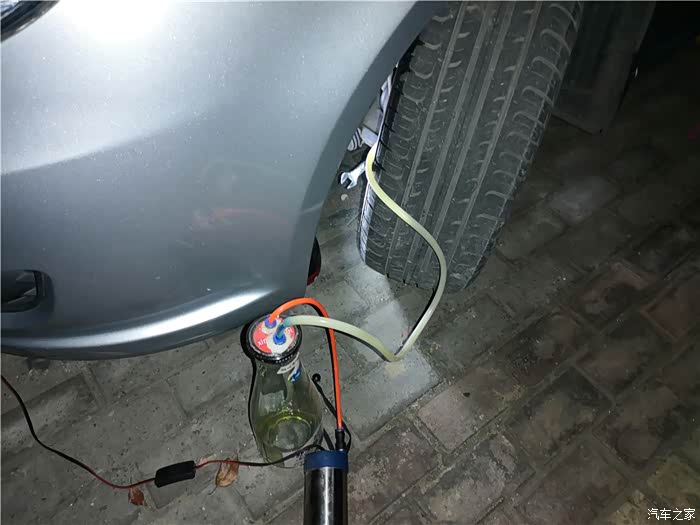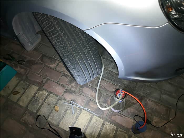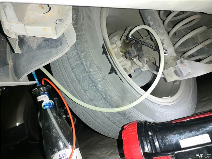 上楼,取工具,准备拍分泵空气看看。因为听车友说,换了刹车油以后出现的,我就怕技师故意在管路里留有空气,所以准备重新排下空气试试。