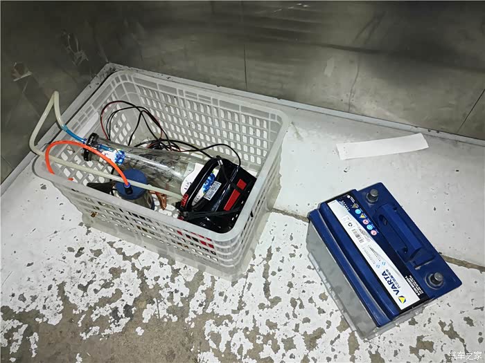 再试试后轮,由于取电夹线太短,又搬来一个电瓶进行操作。