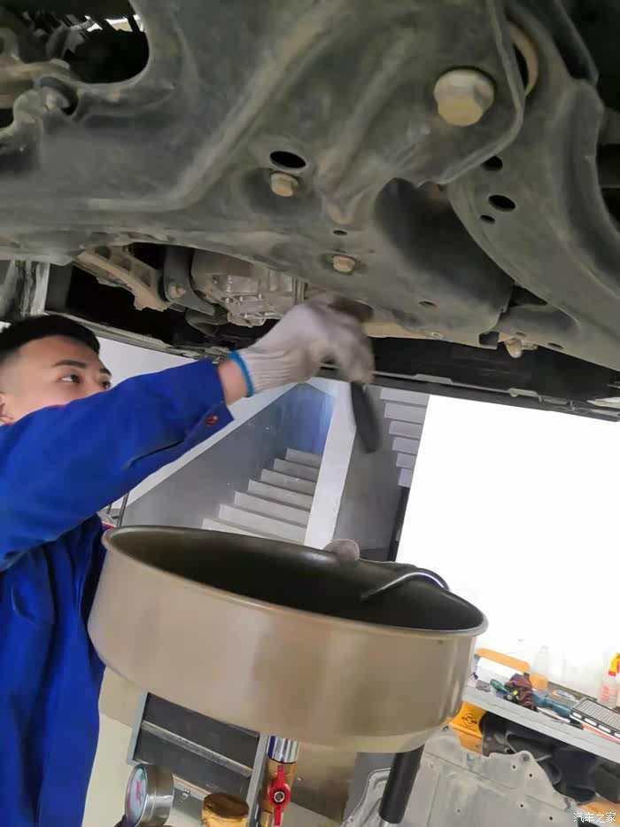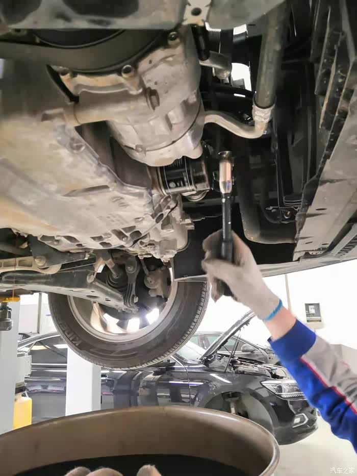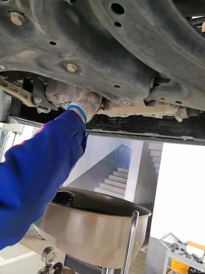 放下升降机,接下来就是给小朗更换机油了,还是和二保时用同一款合成机油,这款原装优选机油效果还是不错的,价格相对来说也比较合理。