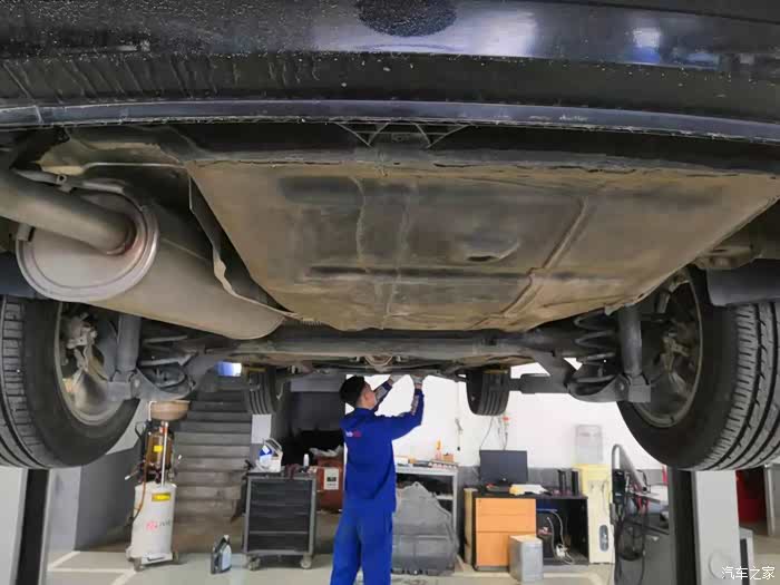 趁着这个空档,我也检查一下小朗的底盘情况(其实维修师傅已经检查过了),发动机没有发现渗油现象。