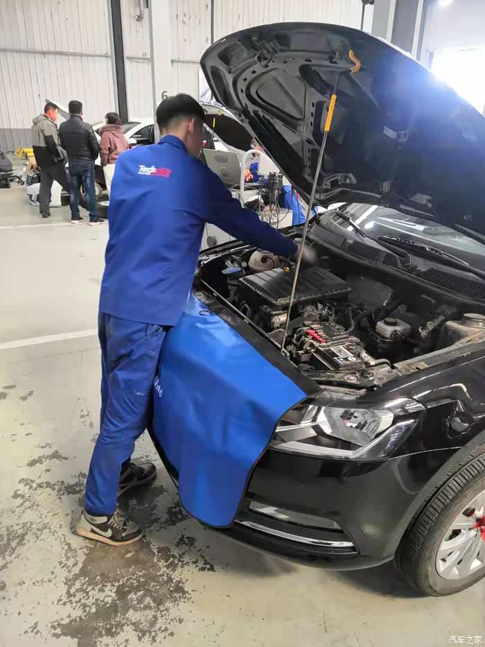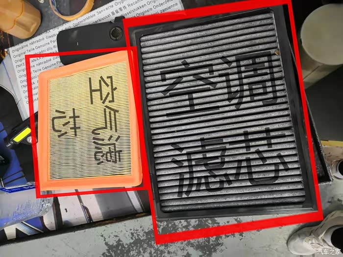 当我过来的时候维修小哥已经把防护垫铺上,空气滤芯和空调滤芯已经拆卸下来了。