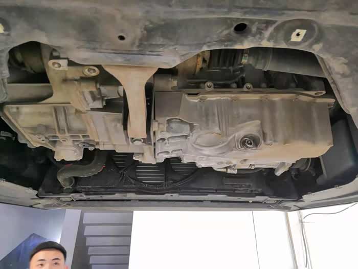 放完机油、回装完放油螺栓、更换完机油滤芯,接着就是回装发动机护板。