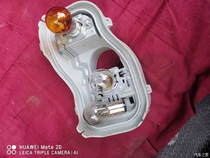 全部拆下来的状态,仔细看,里面的灯丝烧断了。所以仪表盘报警