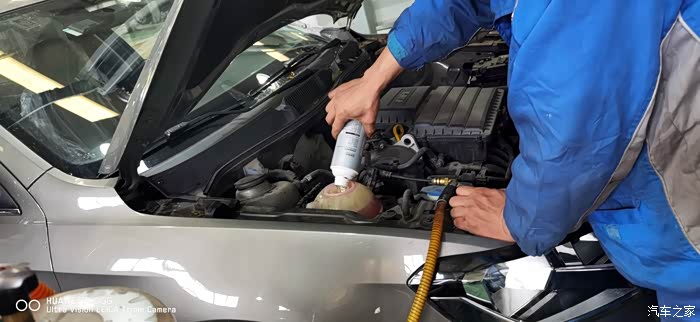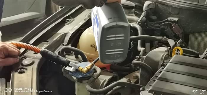 然后维修师傅又把冷却系统保护剂加到冷却液壶里面,作用肯定是保护冷却系统