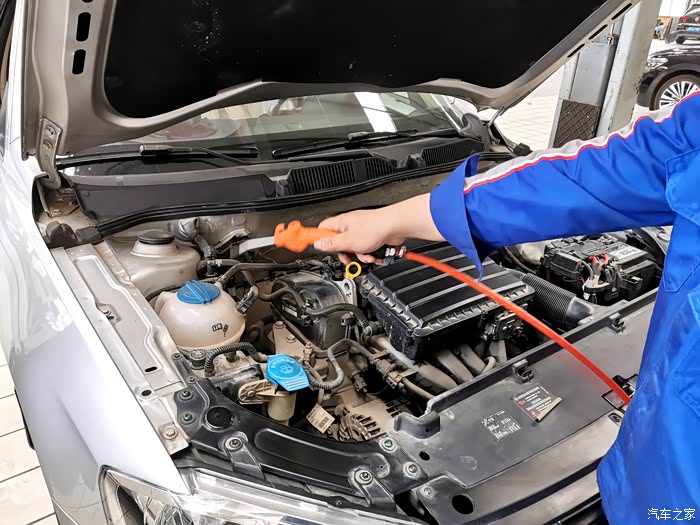 发动机仓盖打开,准备开始保养。