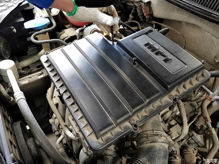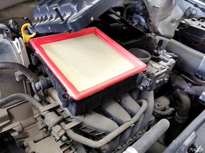 接下来拆发动机盖子,更换发动机空气滤芯。新滤芯,看着就舒服。