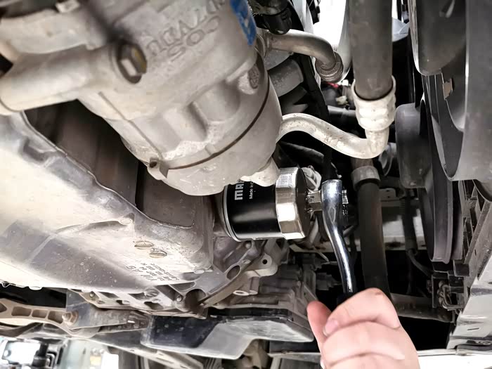 将残留的机油全部放干净。把新的机油滤芯装上去。