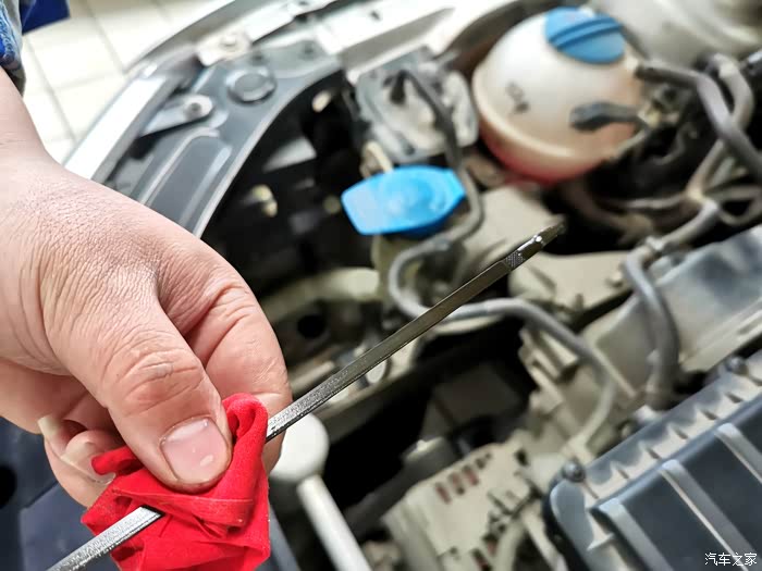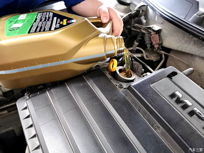 整桶4L的机油全部加进去,检查一下机油刻度,刚刚好。