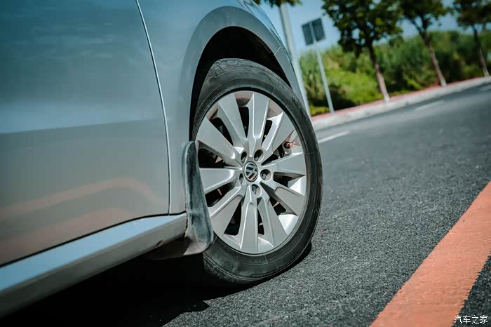 16英寸多辐铝合金轮毂,原厂的邓禄普轮胎已经更换成固特异御乘轮胎。这些年用下来,我觉得固特异御乘轮胎要比原厂邓禄普好很多,毕竟是固特异旗下的高端轮胎,表面特殊的花纹、宽大的沟槽设计等等,让固特异御乘轮胎用起来更加静音,舒适性大大提升,同时,在雨天和湿地的地面,抓地力表现更好,刹车更灵敏。