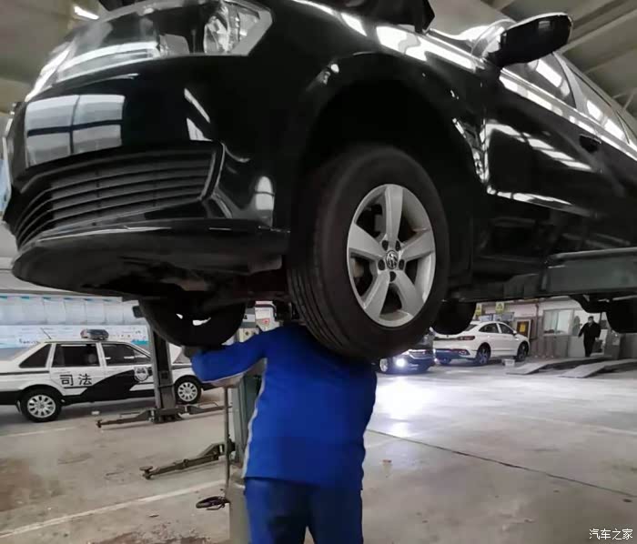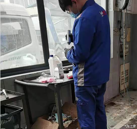 放机油期间师傅开始胎压矫正,看来是个讲究工作效率的人